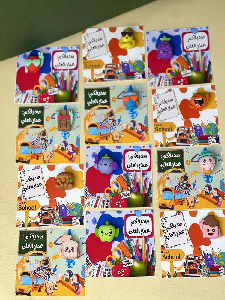 ابدأ السنة الدراسية الجديدة بطريقة مختلفة ومبهجة مع توزيعات العوده للمدارس. تصميم بسيط وراقي يلفت النظر، وكروت أنيقة تحتوي بداخلها محايات عملية، تخلي كل طالب أو طالبة يفرحون بهديتهم الصغيرة. التوزيعات هذي مثالية للمعلمين والمعلمات اللي يحرصون يضيفون لمسة حلوة لأول يوم دراسي.
