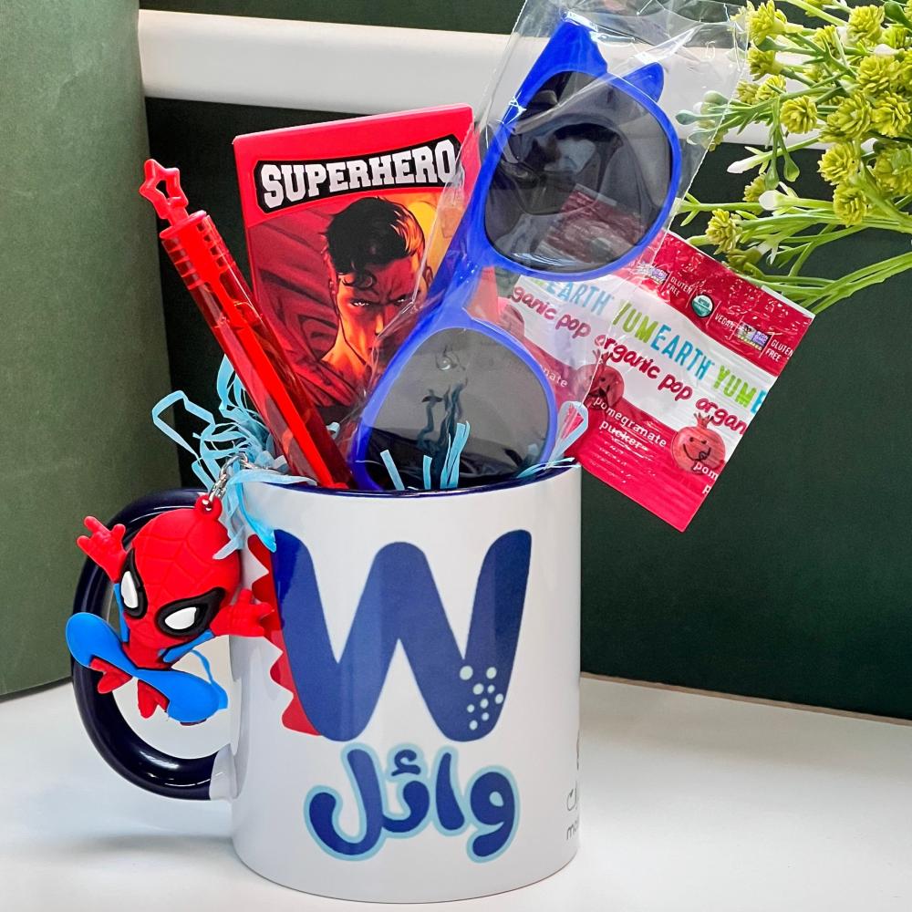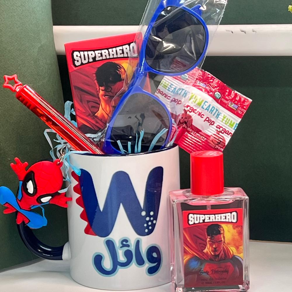 هدية طفل تجمع المتعة والذوق بلمسة شخصية. كوب مطبوع باسم الطفل وحرفه، ومعاه عطر أطفال برائحة ناعمة، ونظارة شمسية تضيف له جو مرح. غير كذا فيها ميدالية وبابلز وحلوى تفرّح قلبه وتخلي الهدية متكاملة ومليانة بهجة. مثالية لأي مناسبة تخص الصغار.